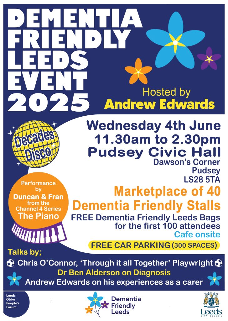 At Dementia Friendly Leeds – as well as hosting our own event (more details below) – we will be helping to promote the range of events and opportunities taking place across the city.